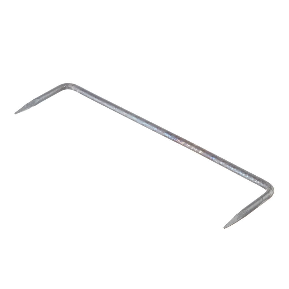 Скоба представляет собой металлическое изделие, по форме напоминающее букву «П». Скоба состоит из «ножек» и «спинки». Концы «ножек» выполнены в виде острых четырехугольных конусов. Скобы изготавливают из гладкого круглого стального прутка методом горячей ковки.