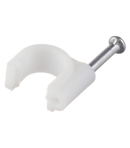 Предназначен для мгновенного, а главное надёжного крепления проводов и кабелей к поверхностям стен, несущих конструкций и потолков. Гвоздик выполнен из закаленного металла, что позволит надежно забивать его даже в плотные и твердые материалы, не опасаясь сломать или погнуть гвоздь. Высококачественный круглый крепеж кабеля REXANT представляет собой дугообразную пластиковую скобу диаметром 8 мм с гвоздём.