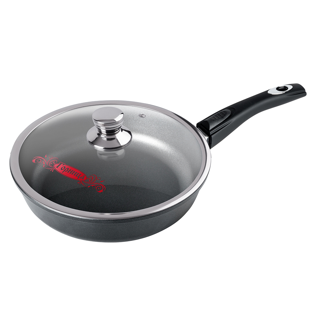 Сковорода Горница Классик d24 см литой алюминий с антипригарным покрытием с крышкой (с2454а)