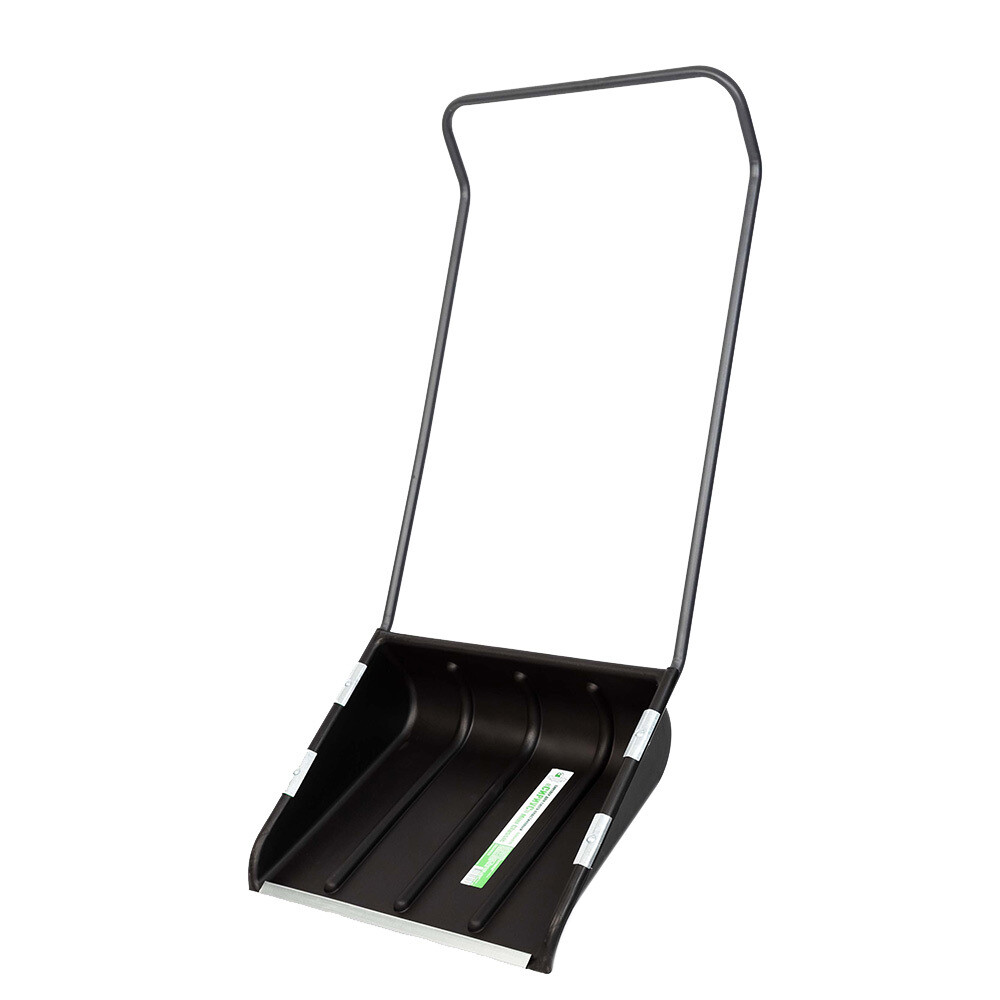 Скрепер для снега оборудован П-образной металлической рукояткой. Ковш имеет изогнутую форму, кромка скрепера усилена планкой из оцинкованной стали, которая защищает пластмассу от механических повреждений. Скрепер для снега хорош в применении при уборке больших и малых территорий, тротуаров, автомобильных стоянок.