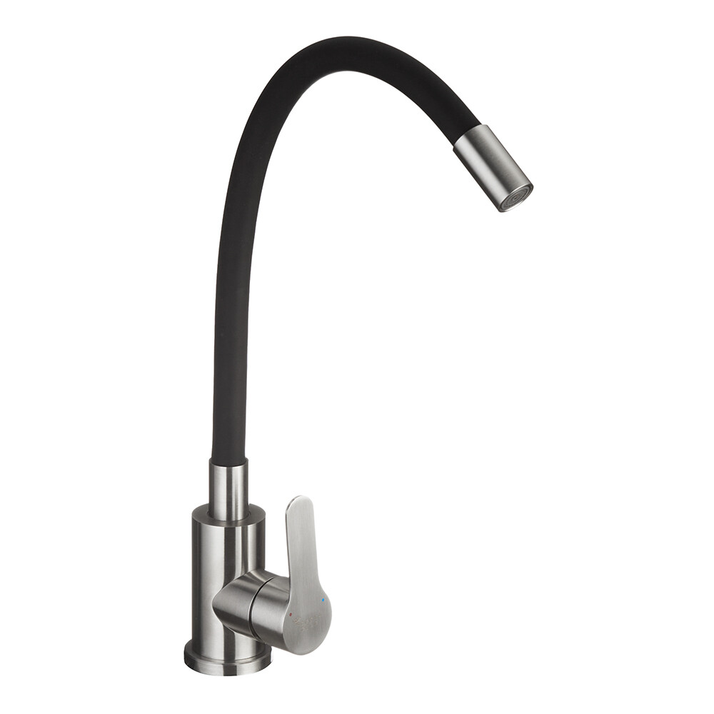 Смеситель для кухни Corsa Deco Vega Steel сталь/черный с гибким изливом однорычажный (966366)