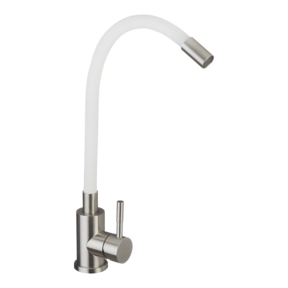 Смеситель для кухни Esko Kitchen сталь/белый с гибким изливом однорычажный (K44 W)