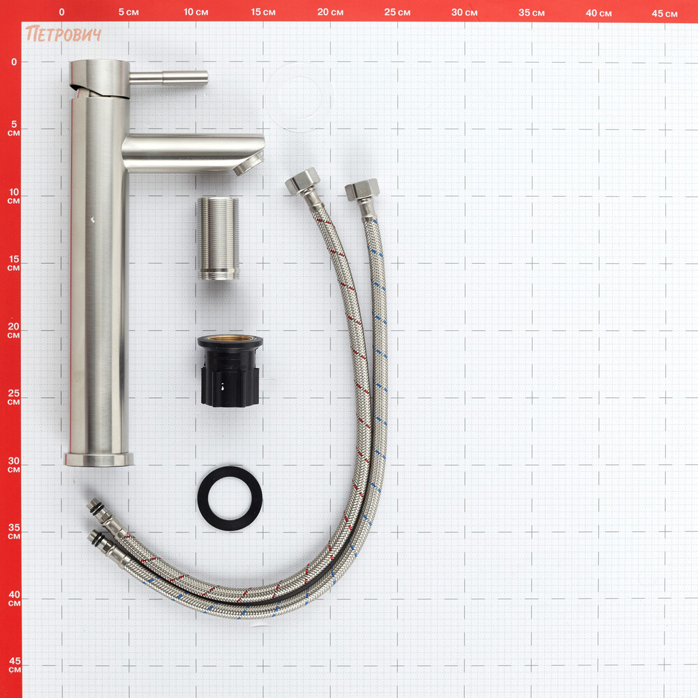 Смеситель, гибкая подводка, монтажный набор, инструкция по эксплуатации с гарантийным талоном.