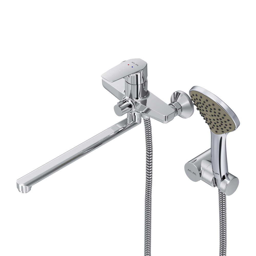 Смеситель для ванны AM.PM Gem хром однорычажный с длинным изливом с лейкой (F90A95000)