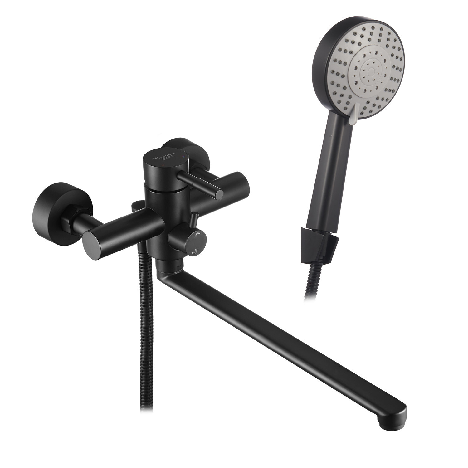 Смеситель для ванны Сorsa Deco AS черный однорычажный с длинным изливом с лейкой (FBTAS3B)