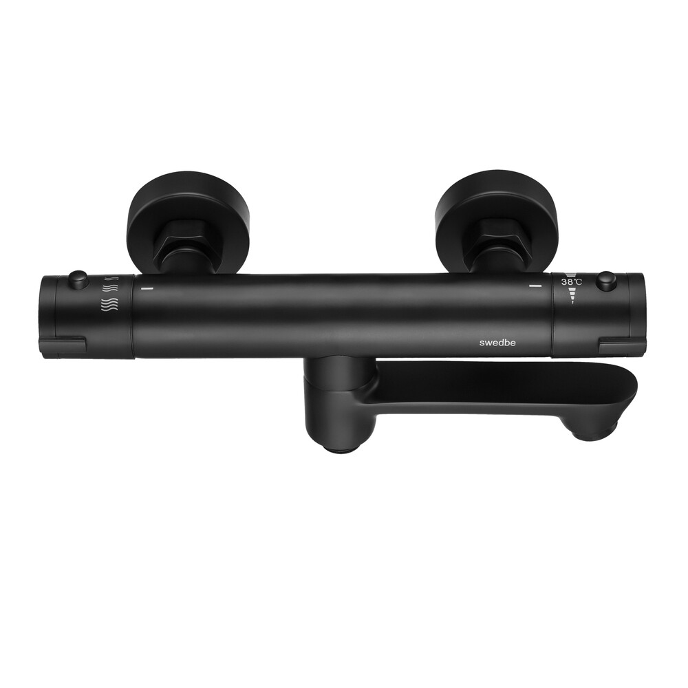 Смеситель для ванны термостатический Swedbe Mercury черный матовый с коротким изливом без лейки