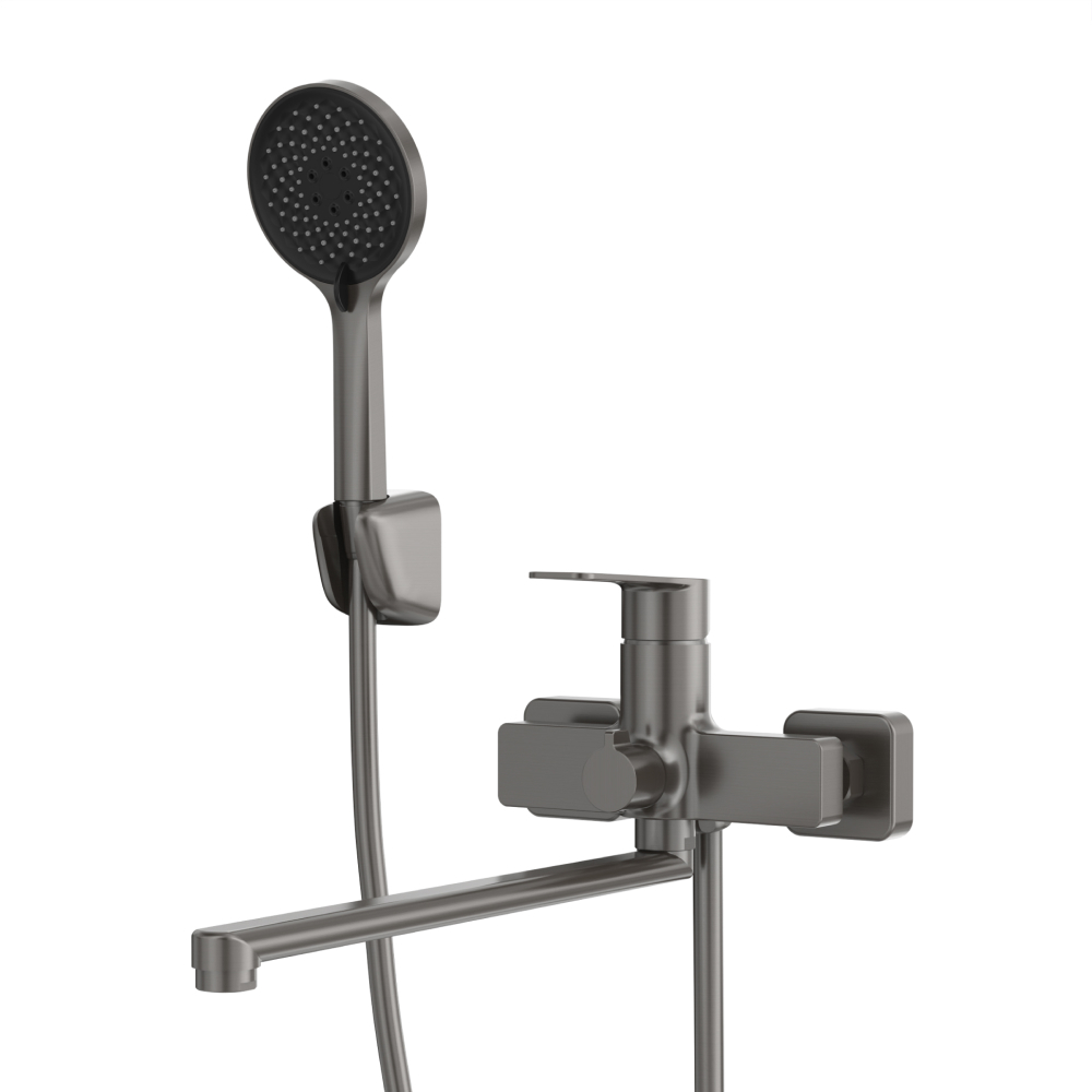 Смеситель для ванны Tokito Kobe графит однорычажный с длинным изливом с лейкой (TOK-KOB-1015)