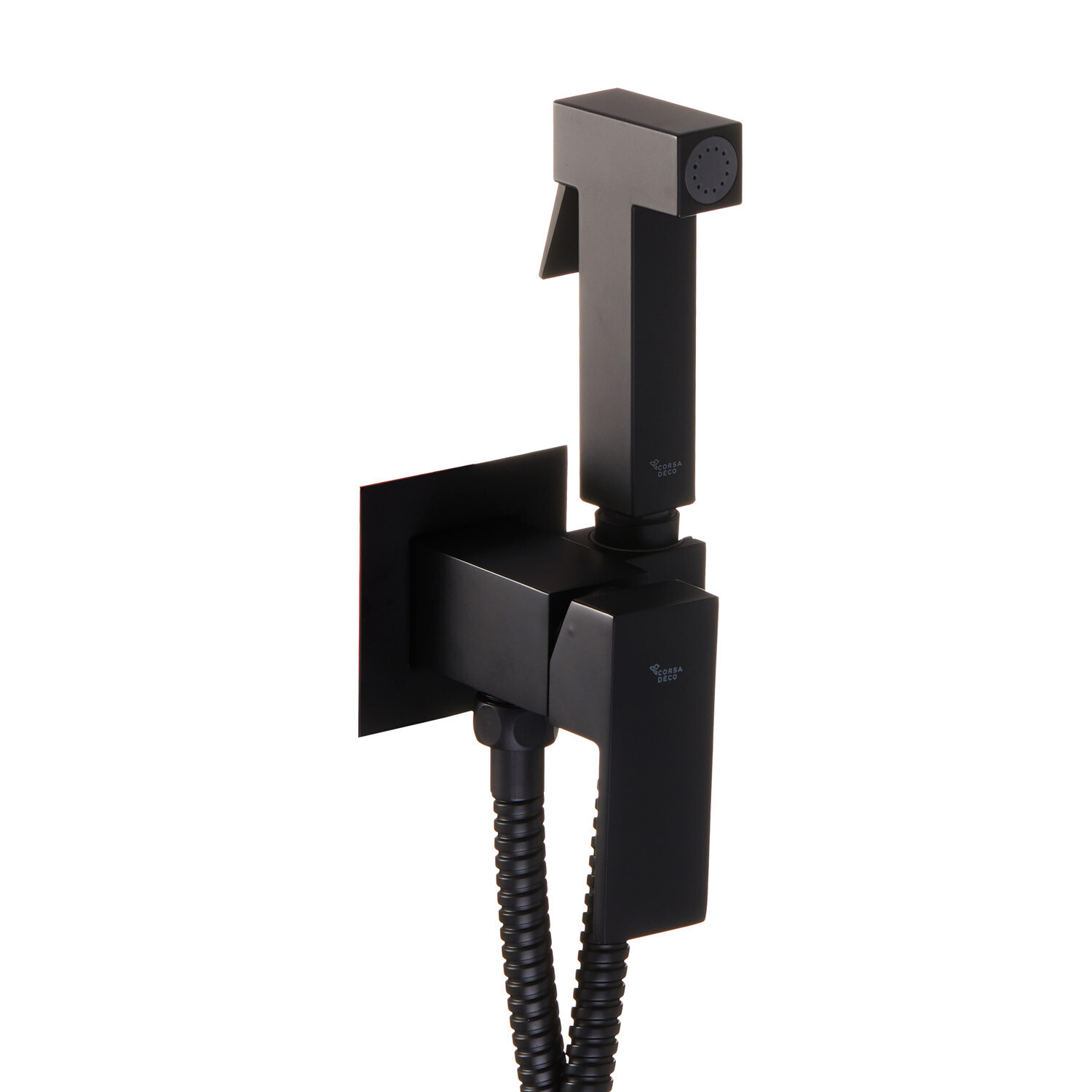 Смеситель с гигиеническим душем встраиваемый Corsa Deco со скрытой частью в комплекте черный (HF002B)
