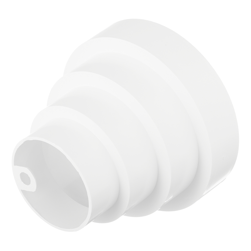 Предназначен для соединения круглых воздуховодов разных диаметров. Корпус подрезается для получения редуктора с необходимыми диаметрами. Соединение осуществляется напрямую с воздуховодами. Материал — пластик.