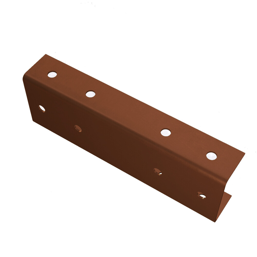 Применяется для соединения профильных труб, поперечин для забора (лаг) размером 40х20 мм или 40х25 мм между собой. Окрашен полимерно-порошковой краской (ППК).