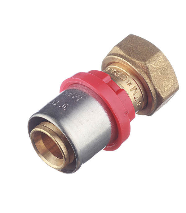 Предназначен для соединения металлопластиковой трубы диаметром 20 мм и коллектора с выходами 1/2″ с наружной резьбой, имеющими плоский торец.