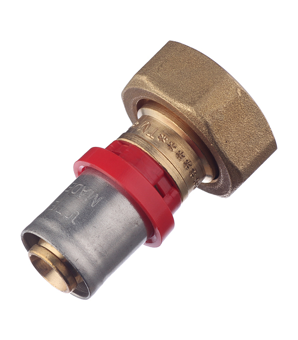 Предназначен для соединения металлопластиковой трубы диаметром 16 мм и коллектора с выходами 3/4″ с наружной резьбой под евроконус.