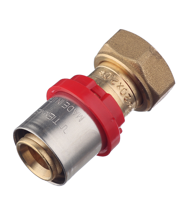 Предназначен для соединения металлопластиковой трубы диаметром 20 мм и коллектора с выходами 1/2″ с наружной резьбой под евроконус.