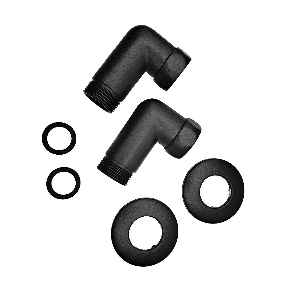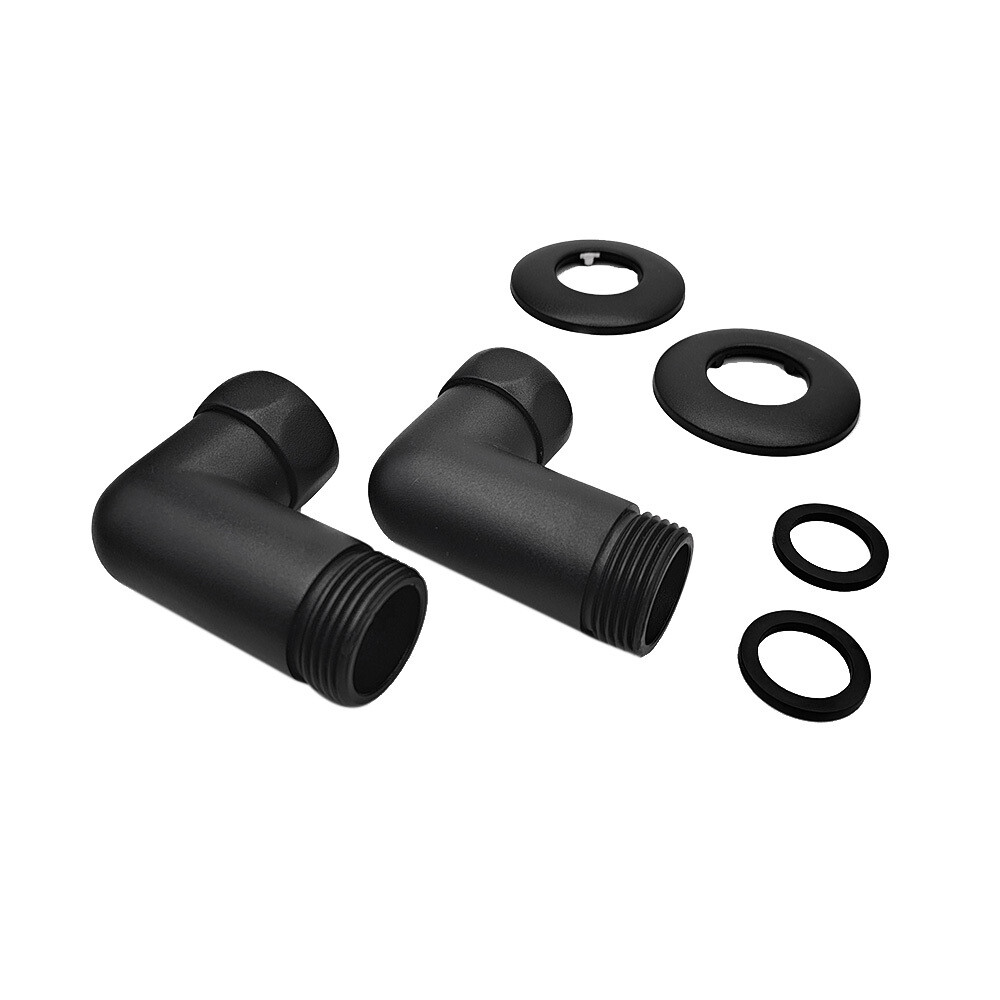 Угловое соединение для подключения полотенцесушителя. Изделие выполнено из латуни. Цвет «Черный Муар», изделие матовое благодаря специальной технологии окрашивания. Рабочая температура до 100°C, рабочее давление до 10 бар.
