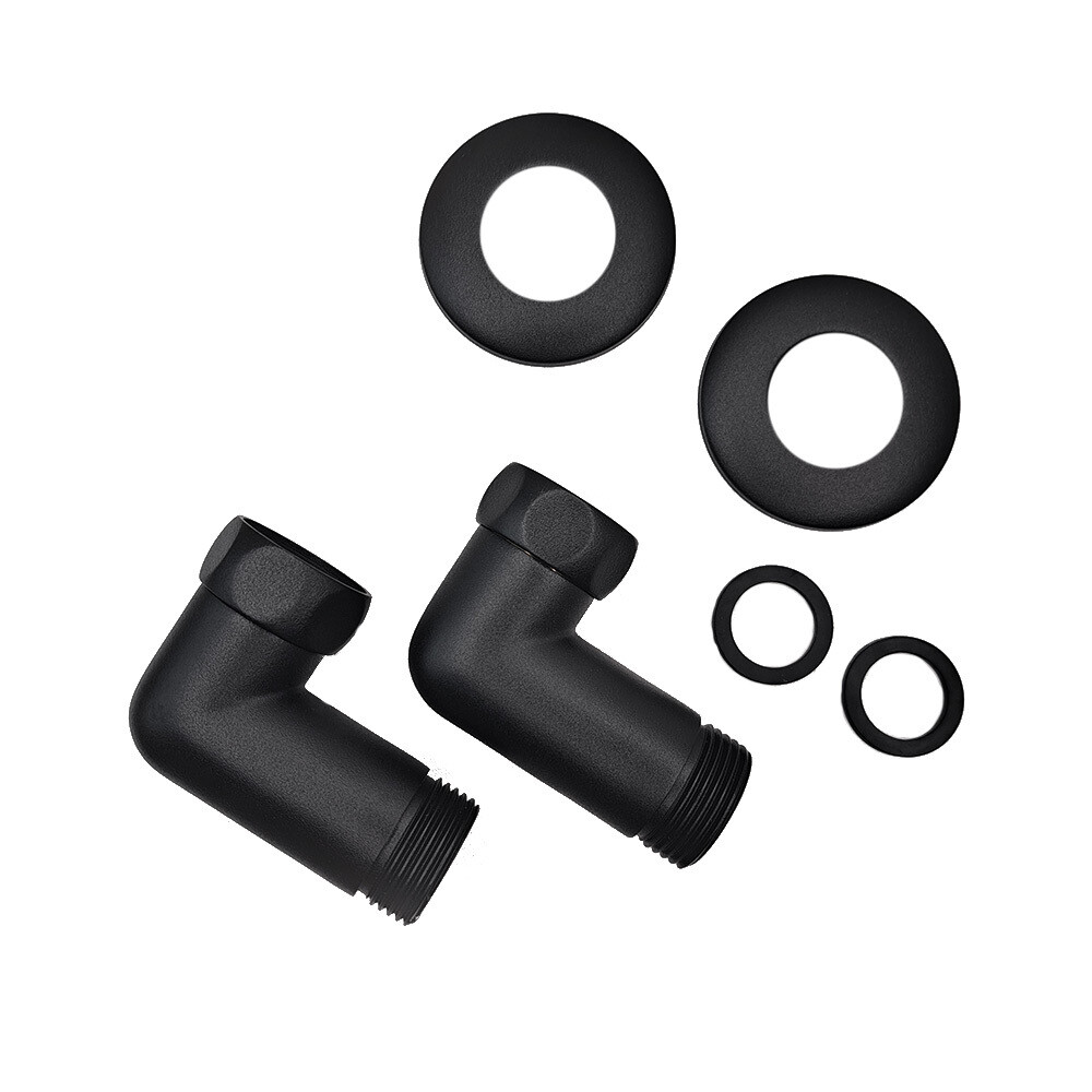 Угловое соединение для подключения полотенцесушителя. Изделие выполнено из латуни. Цвет «Черный Муар», изделие матовое благодаря специальной технологии окрашивания.