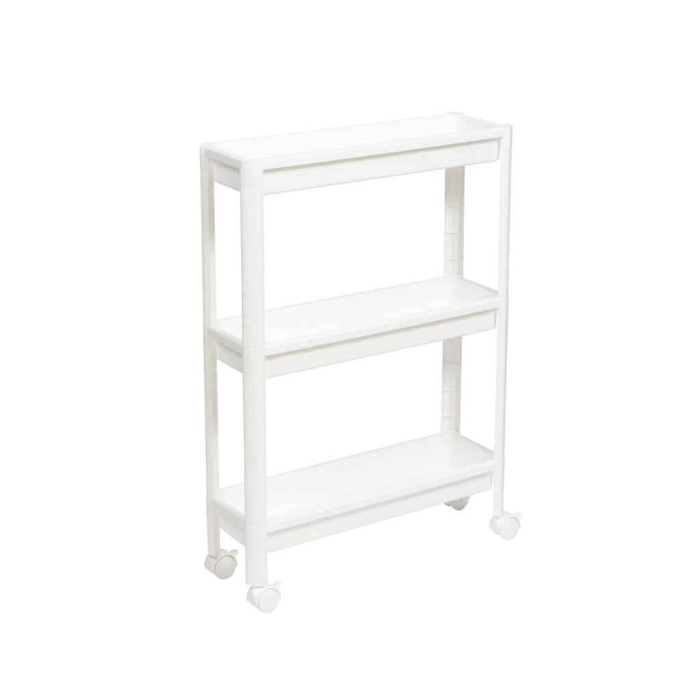 Стеллаж 3-х ярусный, узкий на колесах серии VIKEA — это оптимальное решение для организации пространства на кухне, в ванной, гостиной, прихожей или балконе, а также в любом другом помещении. Изделие состоит из 3-х полок. Узкий стеллаж оснащен четырьмя небольшими колесами с фиксаторами для свободного перемещения, благодаря которым этажерка становится мобильной и многофункциональной. Она компактная, но в тоже время вместительная, впишется в пространство любой комнаты. Этажерка имеет оптимальное расстояние между полками, это позволяет разместить все самые необходимые полезные в хозяйстве мелочи. Стойки сконструированы таким образом, что при их монтаже создается надежное соединение с полкой — это обеспечивает монолитность конструкции и дает возможность легко поднять и переместить этажерку за верхнюю полку. Каркас этажерки выполнен из прочного пластика и не прихотлив в уходе, достаточно протереть влажной губкой или промыть под струей теплой воды. На дне каждой полки имеются отверстия, благодаря которым влага не будет накапливаться. Изделие безопасно, не имеет острых углов и изготовлено из экологичного материала, предназначенного для контакта с пищевыми продуктами и детскими вещами. Изделие поставляется в разобранном виде в индивидуальной коробке, надежно предохраняющей от повреждений, внутри подробная схема сборки.