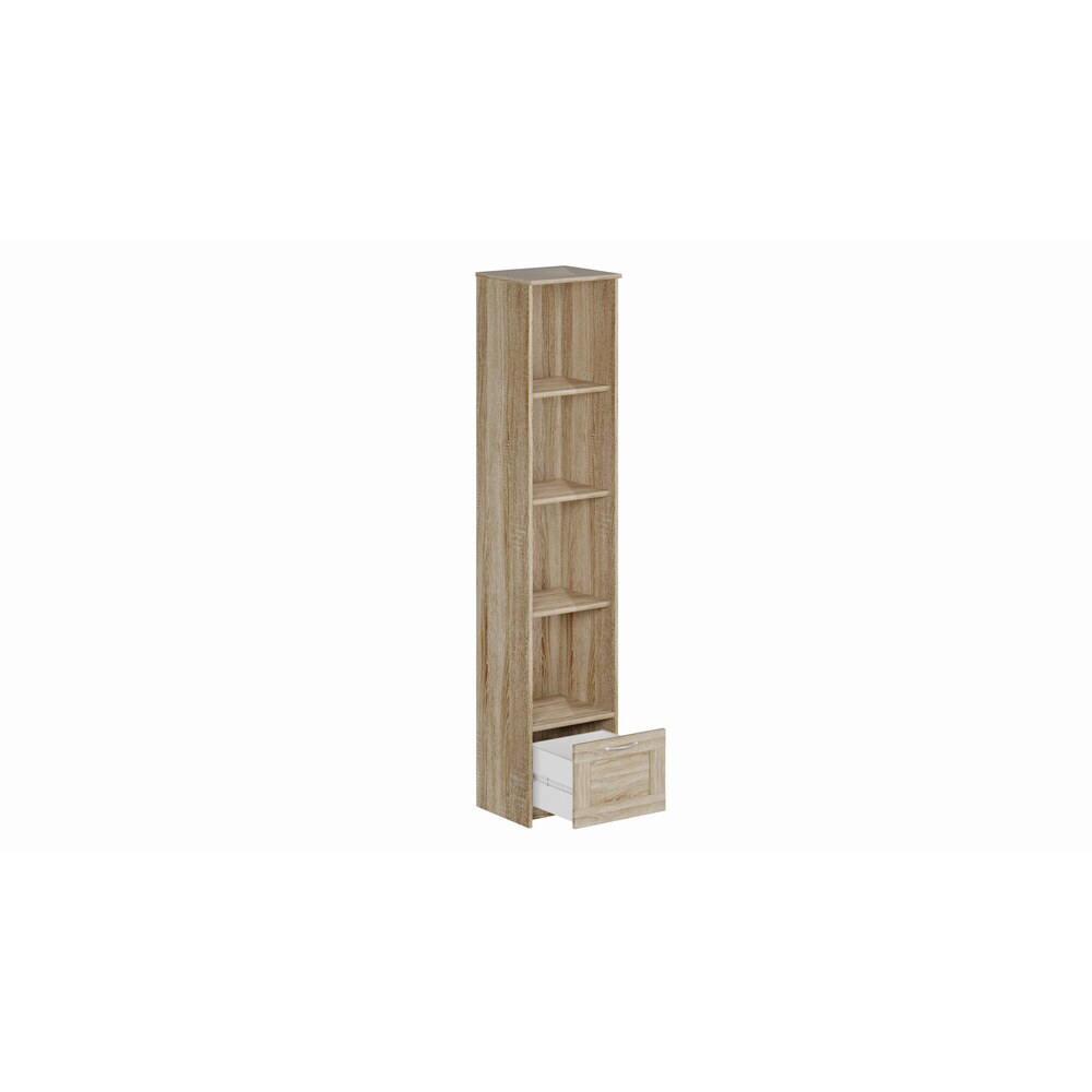 Стеллаж Сириус узкий 39х190 см с 1 ящиком и четырьмя полками. Выполнен в классическом стиле. Размер стеллажа 39х35х190 см. Подходит для использования в домашней и офисной обстановке. Выполнен из ЛДСП.
