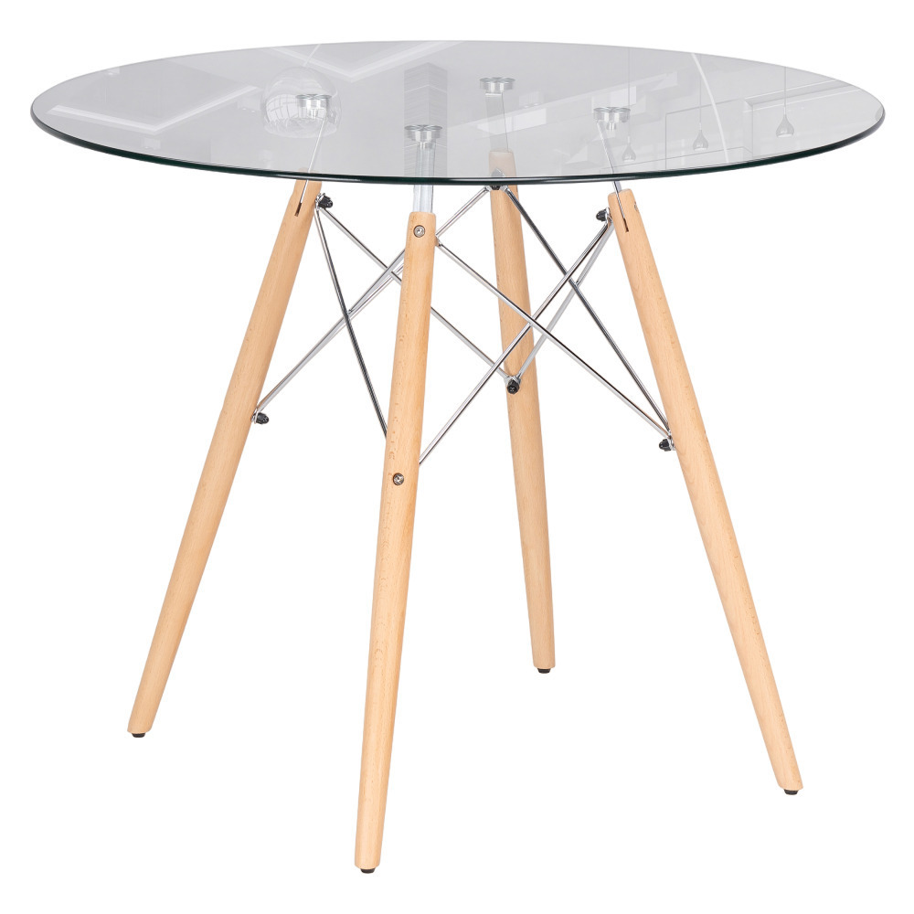 Стол PT-151 с ножками из массива бука и хромированными металлическими стяжками — это очень стильный и современный стол. Круглая стеклянная столешница толщиной 10 мм придает ему легкость и воздушность. Хромированные стяжки добавляют столу оригинальности и уникальности. Такой стол будет отлично смотреться в современном интерьере, а его функциональность и удобство использования позволят использовать его в различных ситуациях.