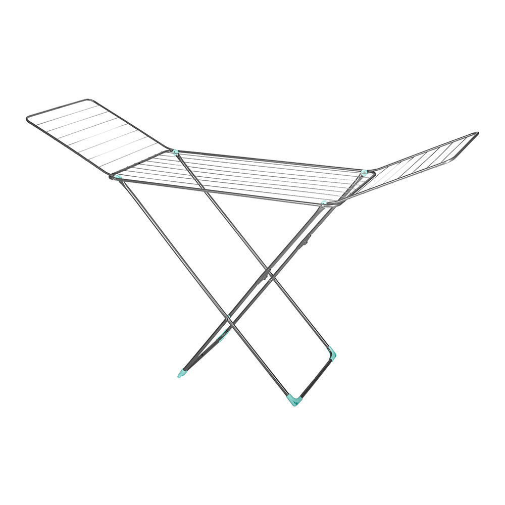Сушилка для белья напольная со складным механизмом опор и антискользящими наконечниками на опорах.