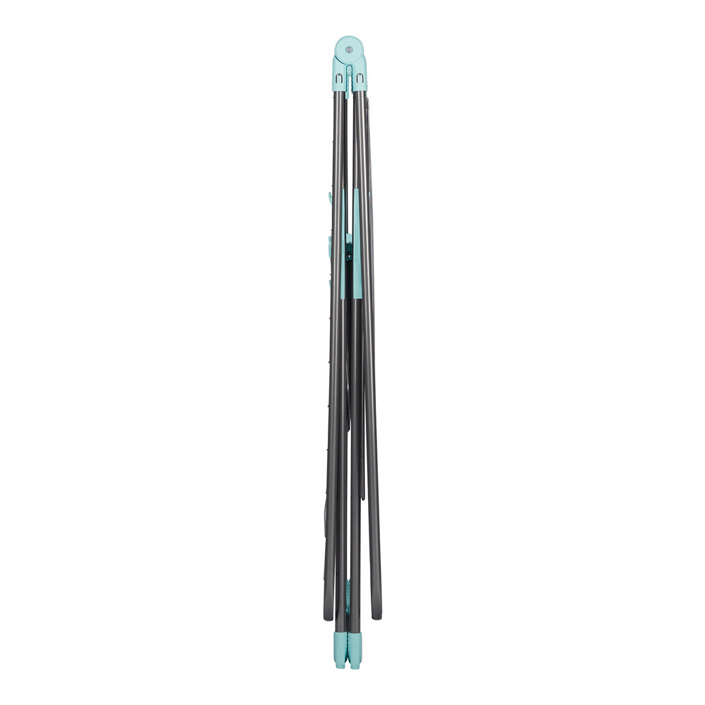 Сушилка для белья напольная со складным механизмом опор. Расположение сушильных прутьев на распашных створках – поперечное. Имеет антискользящие наконечники на опорах.