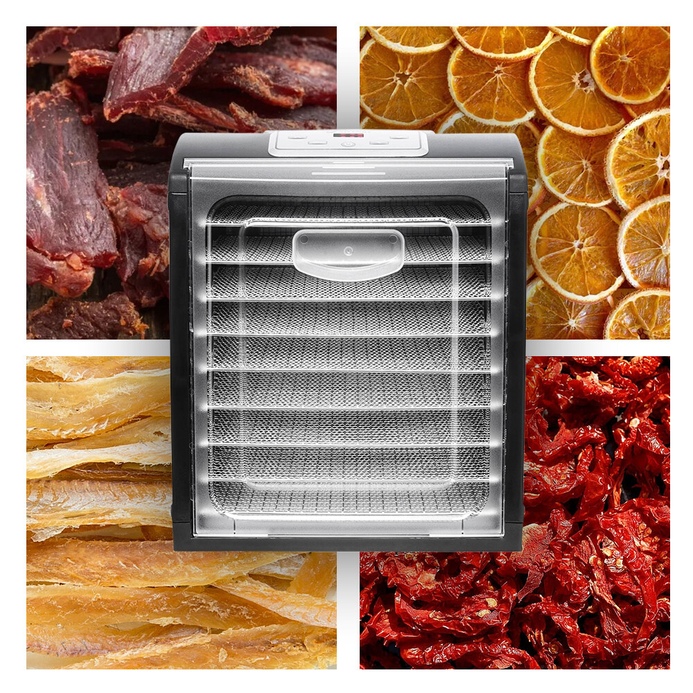 Сушилка Kitfort KT-1908 оборудована большим мощным вентилятором, что обеспечивает равномерный горизонтальный обдув всех 9 поддонов. Поток воздуха направлен горизонтально, поэтому запахи продуктов с разных поддонов не смешиваются. На сушилке можно установить температуру сушки в диапазоне 35-70 °С с шагом в 5 градусов. Сушилка оснащена таймером до 19,5 часов с шагом 30 минут. 9 металлических поддонов, 9 поддонов с бортиками для пастилы и 9 сеток помогут разместить внутри сушки абсолютно любые продукты. Прибор имеет строгие формы и минималистичный стильный дизайн. Дверца полностью снимается, через неё удобно наблюдать за ходом сушки.