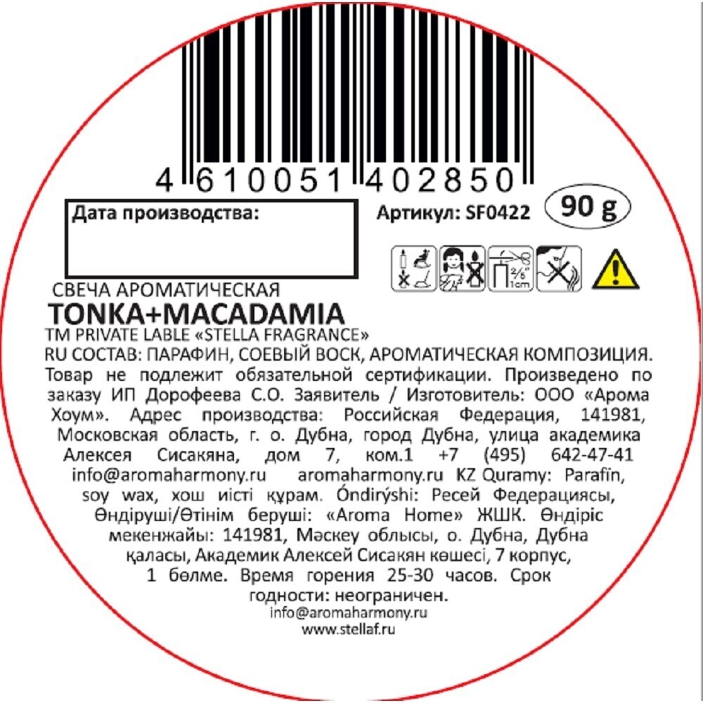 Для достижения лучшего уровня ароматизации, необходимо, чтобы свеча горела не менее 20 минут.