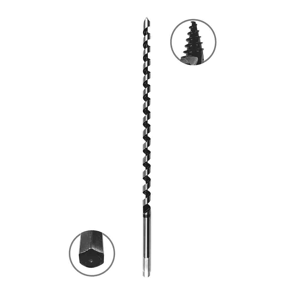 Предназначено для глубокого сверления в заготовках ДСП, мягких и твердых породах древесины. Материал сверла — инструментальная сталь повышенной прочности, которая подходит для изготовления сверл, сохраняя их режущие качества и высокий рабочий ресурс. С помощью шестигранного хвостовика 12,5 HEX сверло надежно закрепляется в патроне дрели. Специальная форма шнека и центрирующего острия обеспечивают быстрый заход в материал и выход без заклинивания.