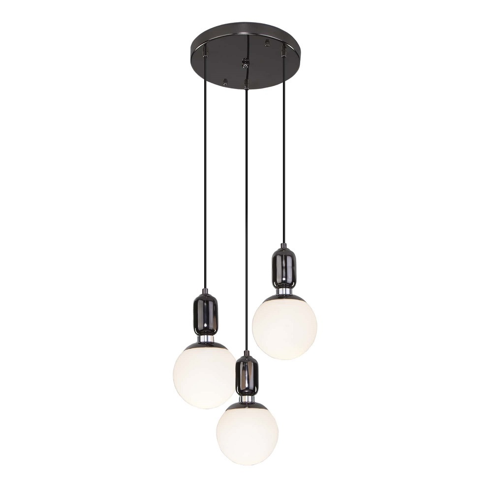 Подвесной светильник со стеклянными плафонами 50151/3 черный жемчуг предназначен для создания дополнительного освещения и акцентной подсветки в современных интерьерах. Светильник со сменной лампой E27 создаст качественное освещение на площади 6 кв.м. и подсветит рабочие зоны на кухне, в гостиной, в офисе и других местах. Данный светильник легко устанавливается на потолке при помощи монтажной планки.