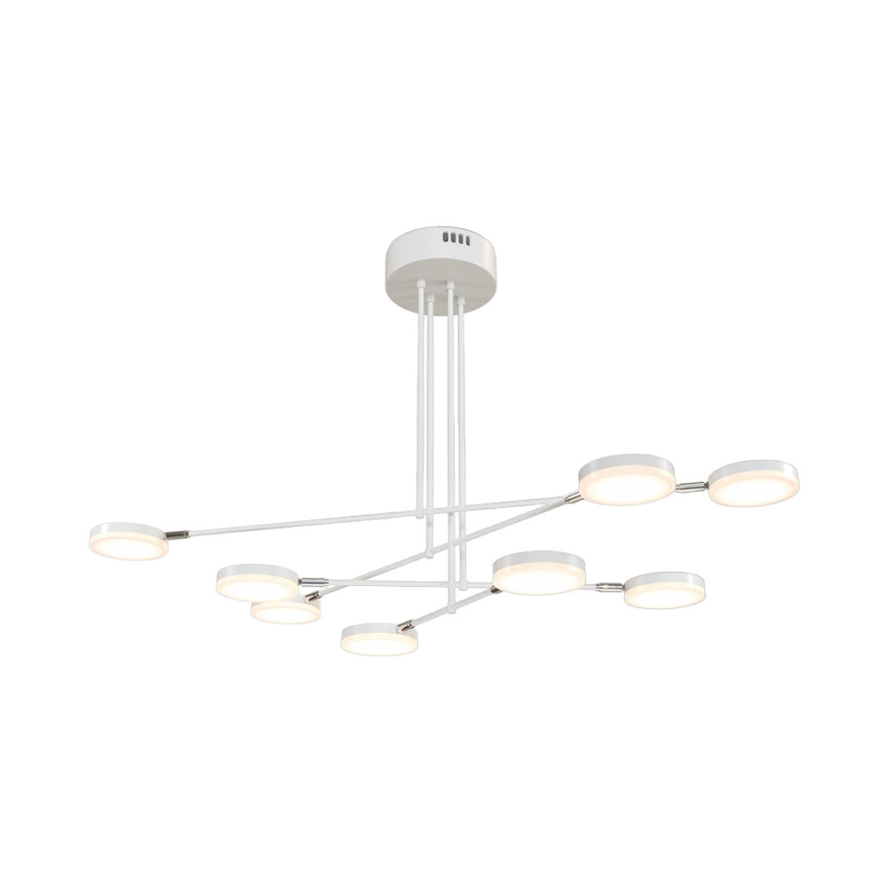 Предназначен для общего освещения различных помещений. В основе дизайна светильников этой серии лежит трехмерная ритмическая композиция из геометрических тел. На тонких пересекающихся между собой стержнях установлены цилиндрические плафоны, каждый из которых вращается на 340° в горизонтальной и 90° в вертикальной плоскостях. Гибкий функционал расширяет возможности для формирования различных сценариев и интуитивного светового зонирования помещения. За счет безрамочной конструкции плафона и интегрированного LED-модуля обеспечивается яркое равномерное свечение по всей поверхности рассеивателя. На корпусе бра и настольной лампе установлены выключатели с функцией плавного диммера. Серия объединяет подвесные, настенные, настольные и напольные модели. Вместе они составляют готовый ансамбль для комплексной подсветки современного интерьера. Лампы в комплект не входят.