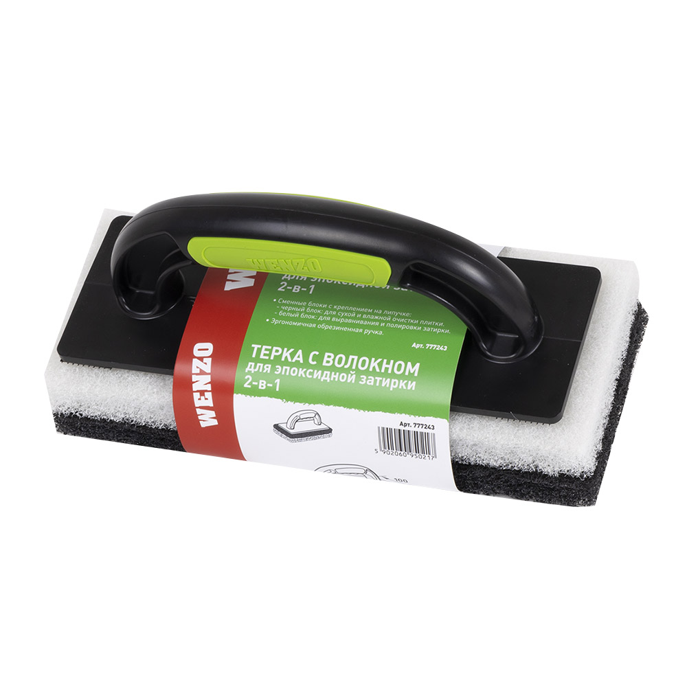 Терка с волокнами предназначена для нанесения эпоксидной затирки после укладки плитки. Для выравнивания швов и мойки плитки после нанесения эпоксидной затирки. Инструмент подходит для очистки засохшей грязи. Не использовать для стеклянной и глазурированной плитки во избежание ее повреждения.