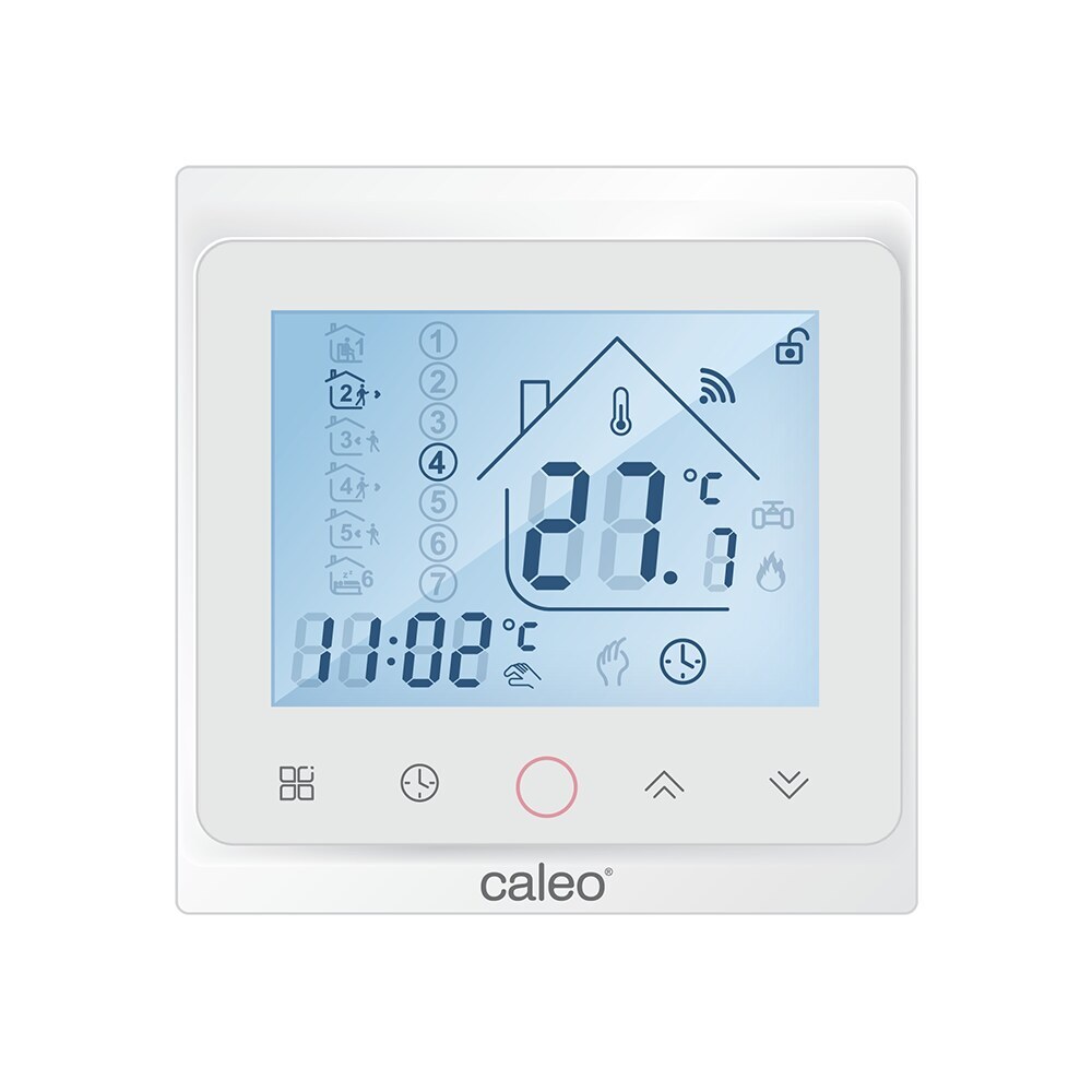 Терморегулятор от производителя Caleo, предназначенный для контроля и управления теплыми полами или другими системами отопления.