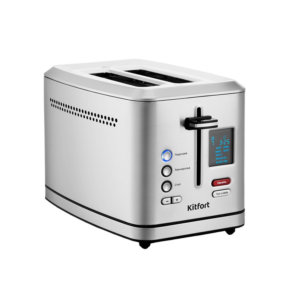 Тостер Kitfort КТ-2049 оснащен функцией памяти на 4 настройки (ячейки памяти) поджарки тостов. Вы можете под каждую настройку подобрать нужную для вас степень прожарки и тип хлеба. После выключения тостера настройки сохраняются. Тостер оснащен панелью управления с LED-дисплеем. При помощи кнопок регулируется степень поджаривания, а также включаются режимы «Подогрев» или «Разморозка». Широкие слоты для тостов позволяют поджаривать не только тонкие ломтики хлеба, но и толстые. Загруженные тосты автоматически центрируются, чтобы их поджарка с двух сторон была равномерной независимо от толщины куска. В нижней части корпуса тостера расположен выдвижной поддон для крошек.