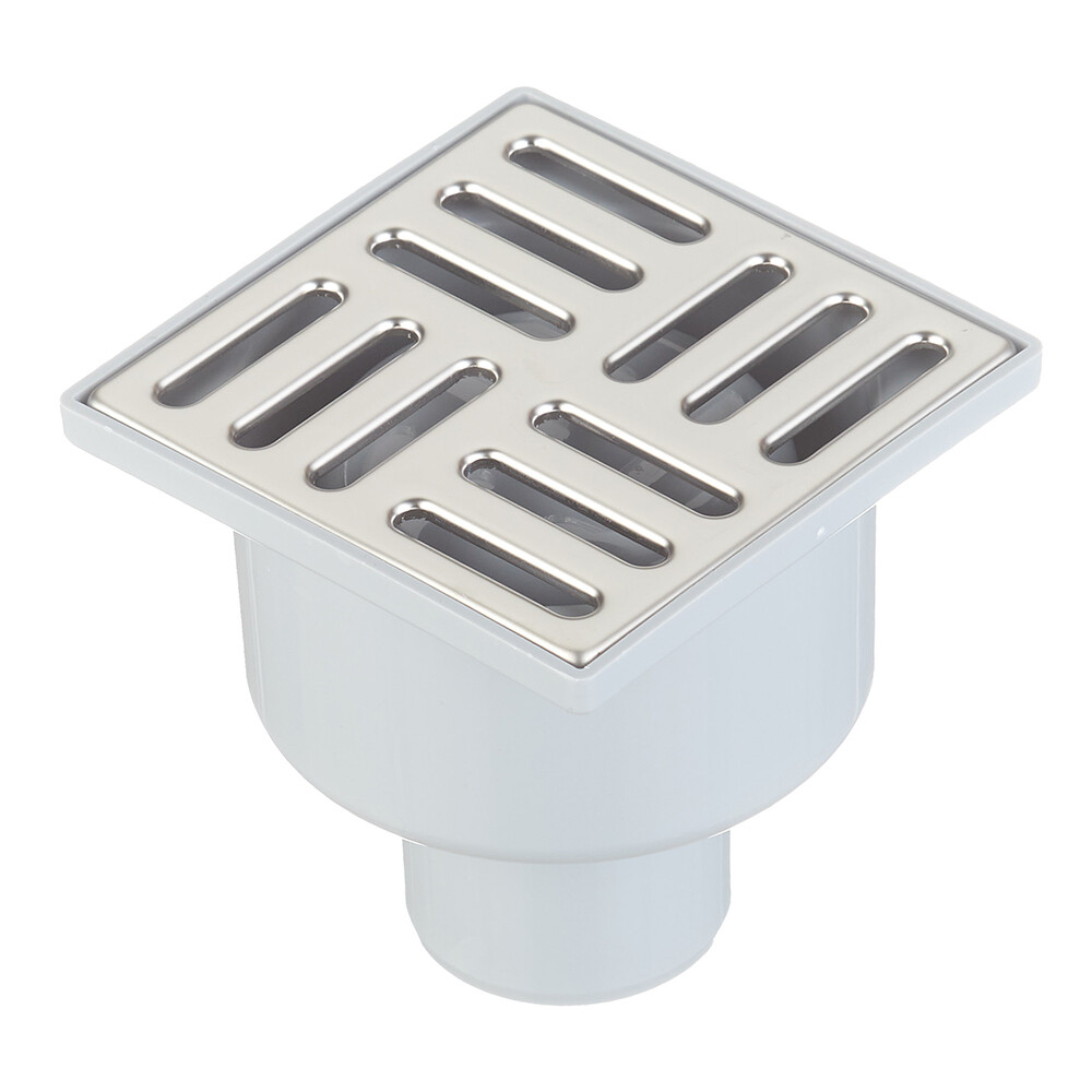 Сливной вертикальный точечный трап с сухим затвором и решеткой из нержавеющей стали 100×100 мм. Трап с вертикальным отводом чаще всего применяются, когда основная канализационная сеть, в которую будет отводиться жидкость, проложена глубоко. Подходит для редкого использования. Элементарная поплавковая конструкция не позволит проникать запахам из канализации. Корпус выполнен из высококачественного полипропилена. Выдерживает нагрузку до 300 кг.