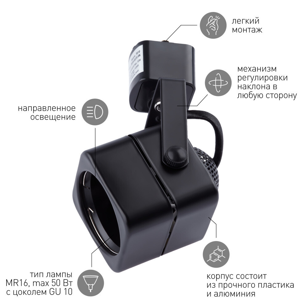 Трековый светильник однофазный Эра TR10-GU10 15 Вт GU10 1 кв.м черный (Б0044262)