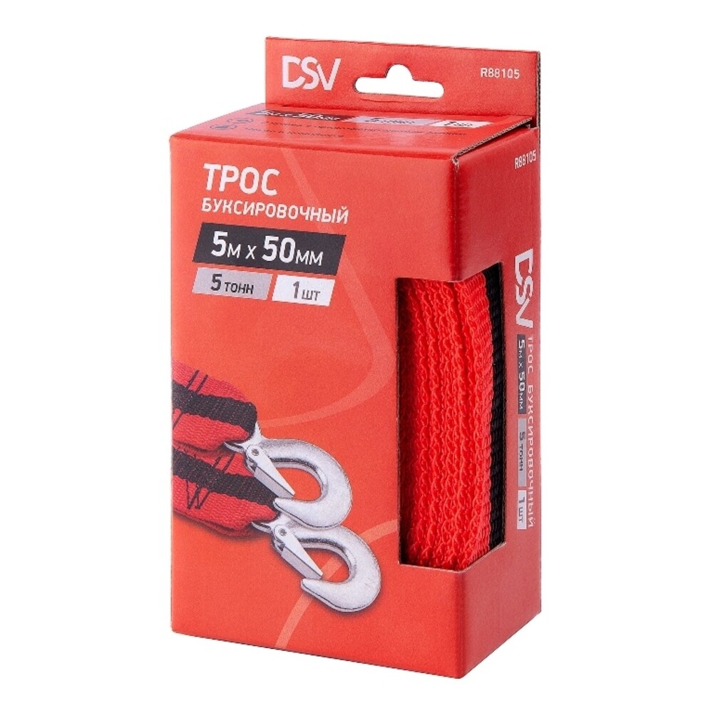 Буксировочный трос DSV предназначен для вытягивания застрявшей машины и транспортировки неисправного автомобиля. Материал полностью выдерживает воздействие различных погодных условий, в том числе мороза. Крюки выполнены из прочной стали.