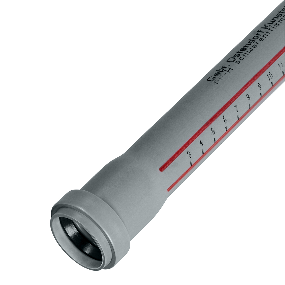 Внутренняя система канализации Ostendorf HT. Длина трубы указана с учетом раструба.