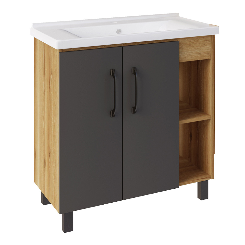 Тумба под раковину АСБ-Мебель Агата 80 см напольная дуб крафт/серая (80062)