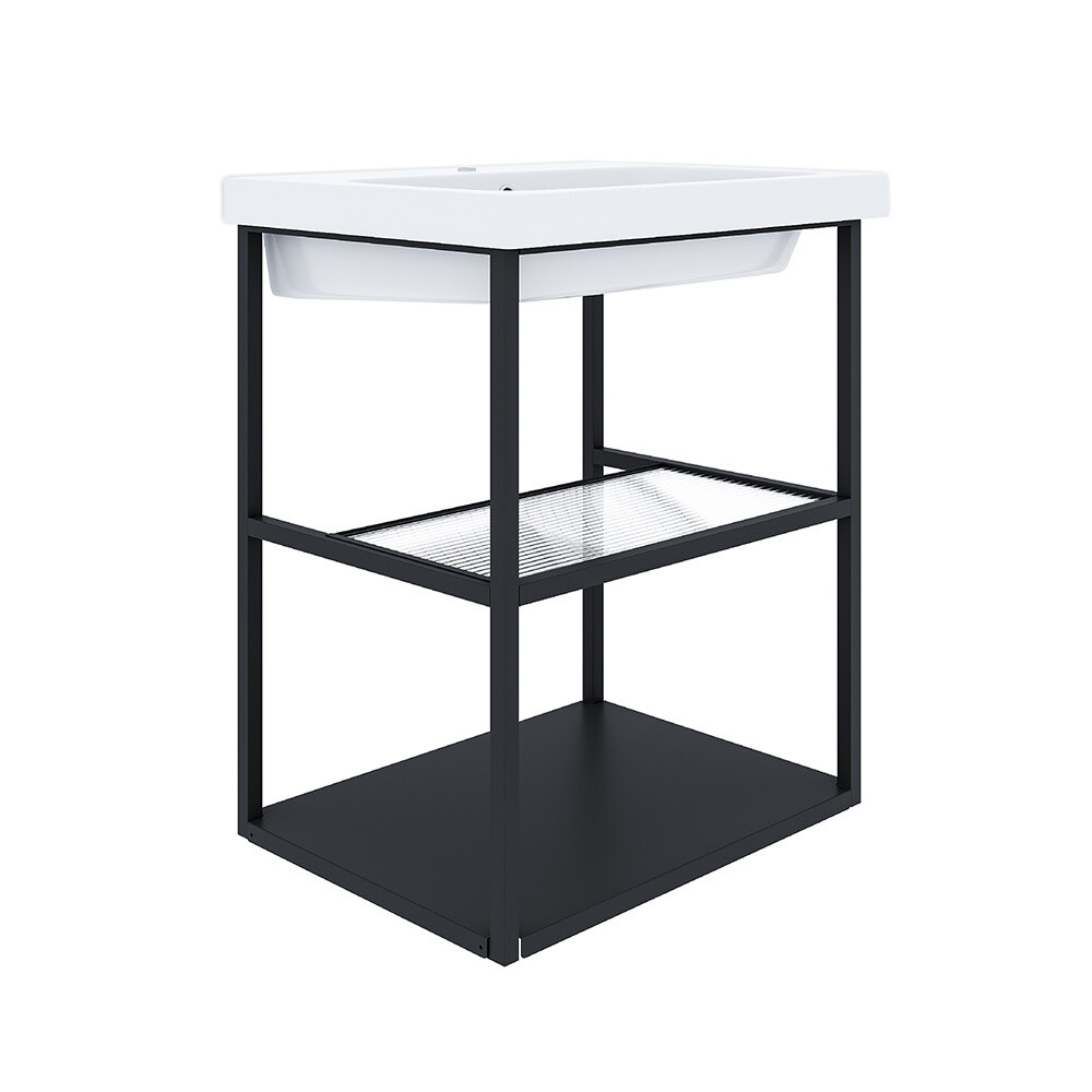 Комплектация: Боковые опоры — 2 шт., полка металл — 1 шт., полка стекло с рамой — 1 шт., планка — 3 шт., винт М6 — 12 шт., дюбель — 4 шт., саморез — 4 шт., демпфер самоклеящийся — 4 шт., заглушка самоклеящаяся — 4 шт.
