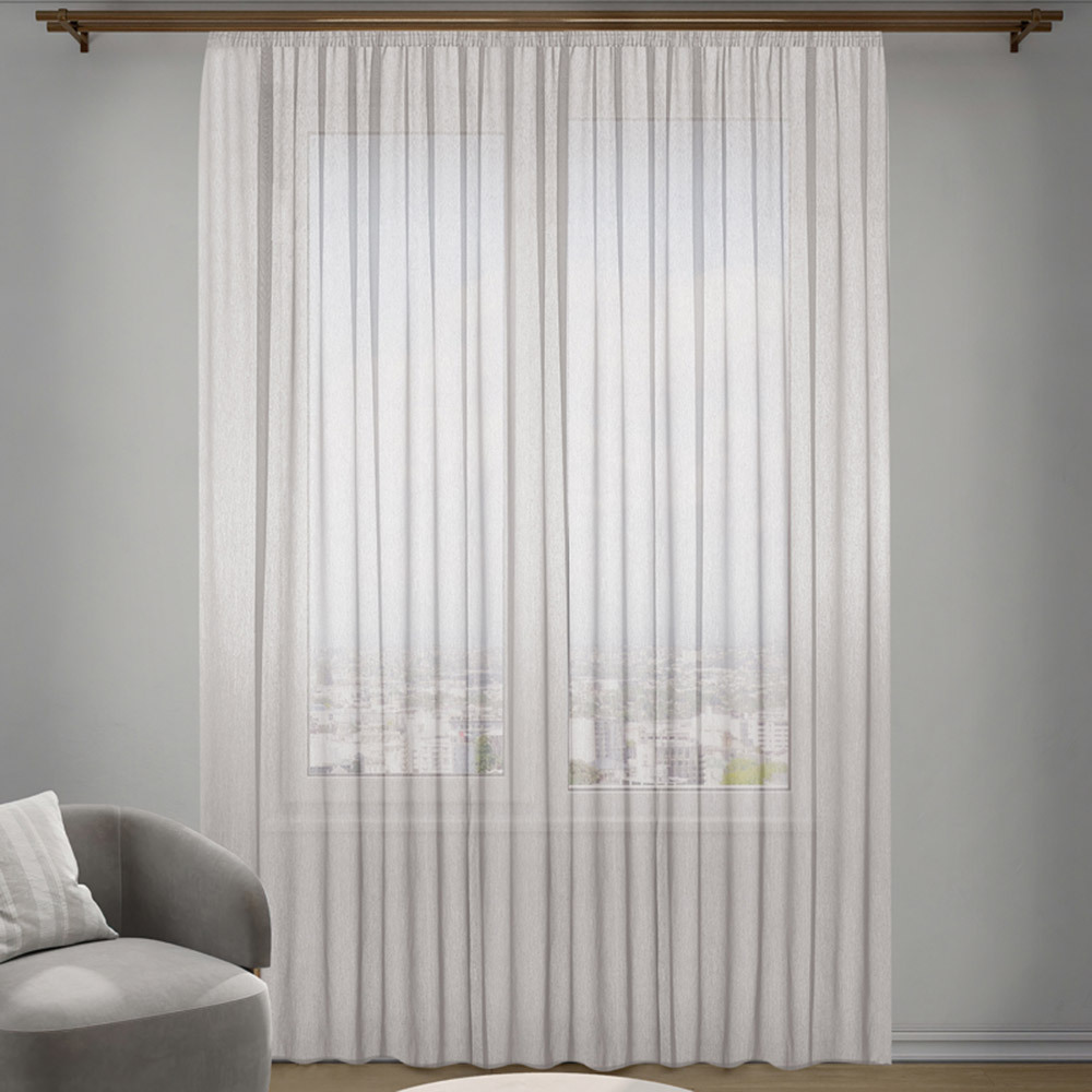 Однотонная универсальная, полупрозрачная вуаль защищает помещение от посторонних глаз, пропускает солнечные лучи, наполняя помещение мягким рассеянным светом. При помощи шторной ленты для крючков легко регулировать ширину портьеры и создавать аккуратные равномерные складки. Предназначена для декорирования окон. Также можно сочетать с плотными шторами для стильного и яркого оформления вашего дома. В комплекте 1 полотно.