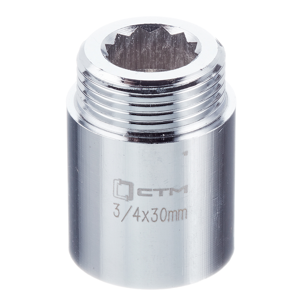 Предназначен для удлинения резьбового соединения на 30 мм. С одной стороны имеет внутреннюю резьбу 3/4″ (20 мм), с другой стороны наружную 3/4″ (20 мм).