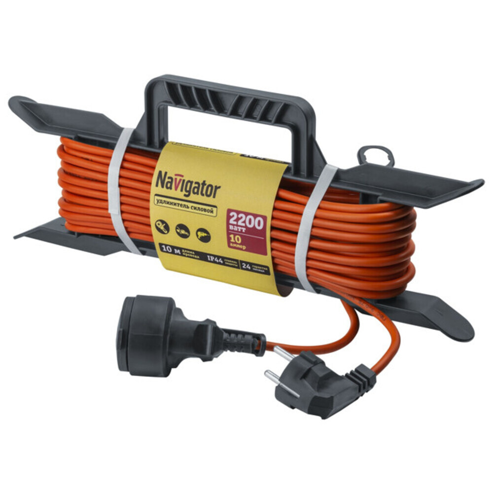 Удлинитель Navigator с заземлением 10 м на катушке 2,2 кВт 1 розетка ПВС 3х1 кв.мм IP44