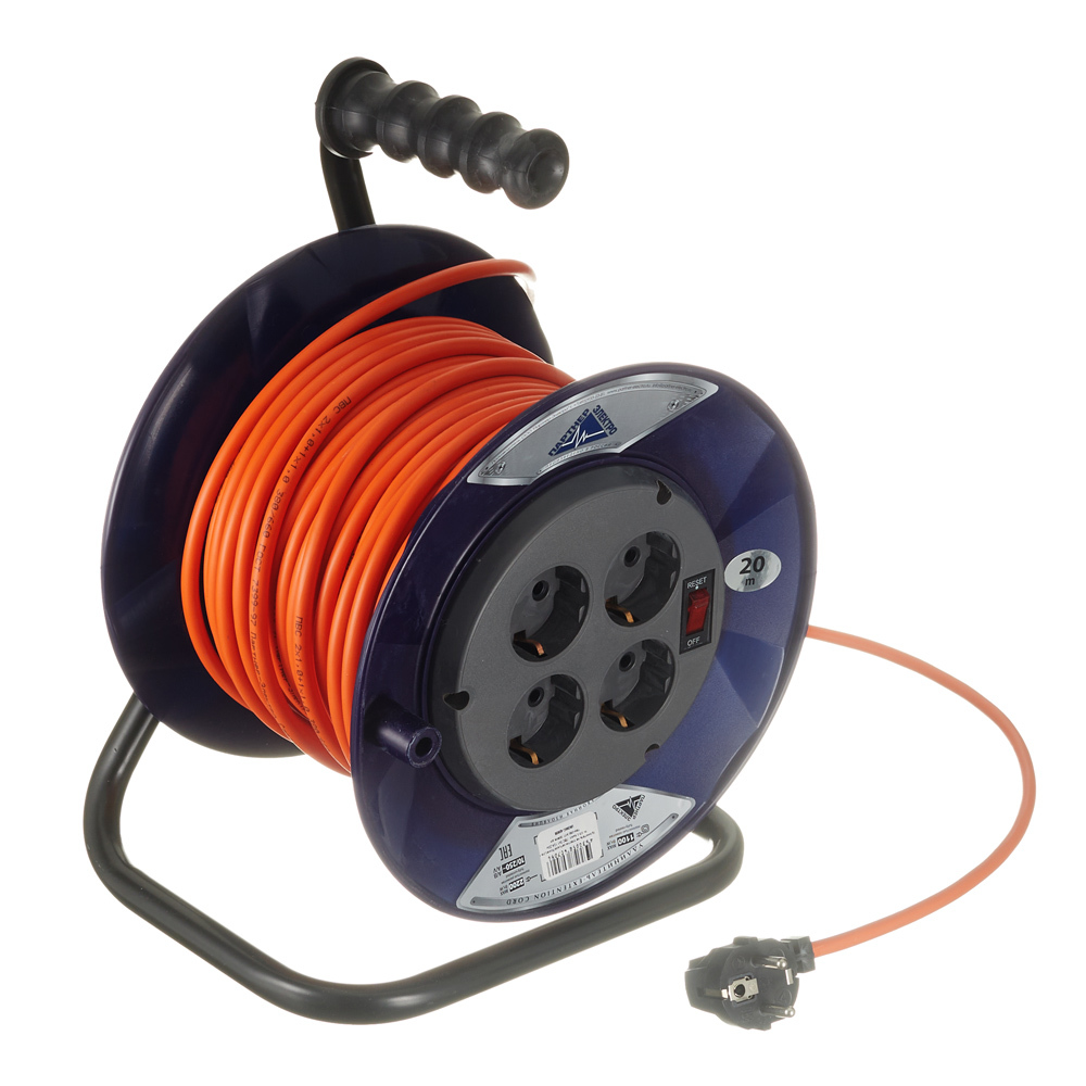 Удлинитель Партнер Электро с заземлением 20 м на катушке 2,2 кВт 4 розетки ПВС 3х1 кв.мм IP20