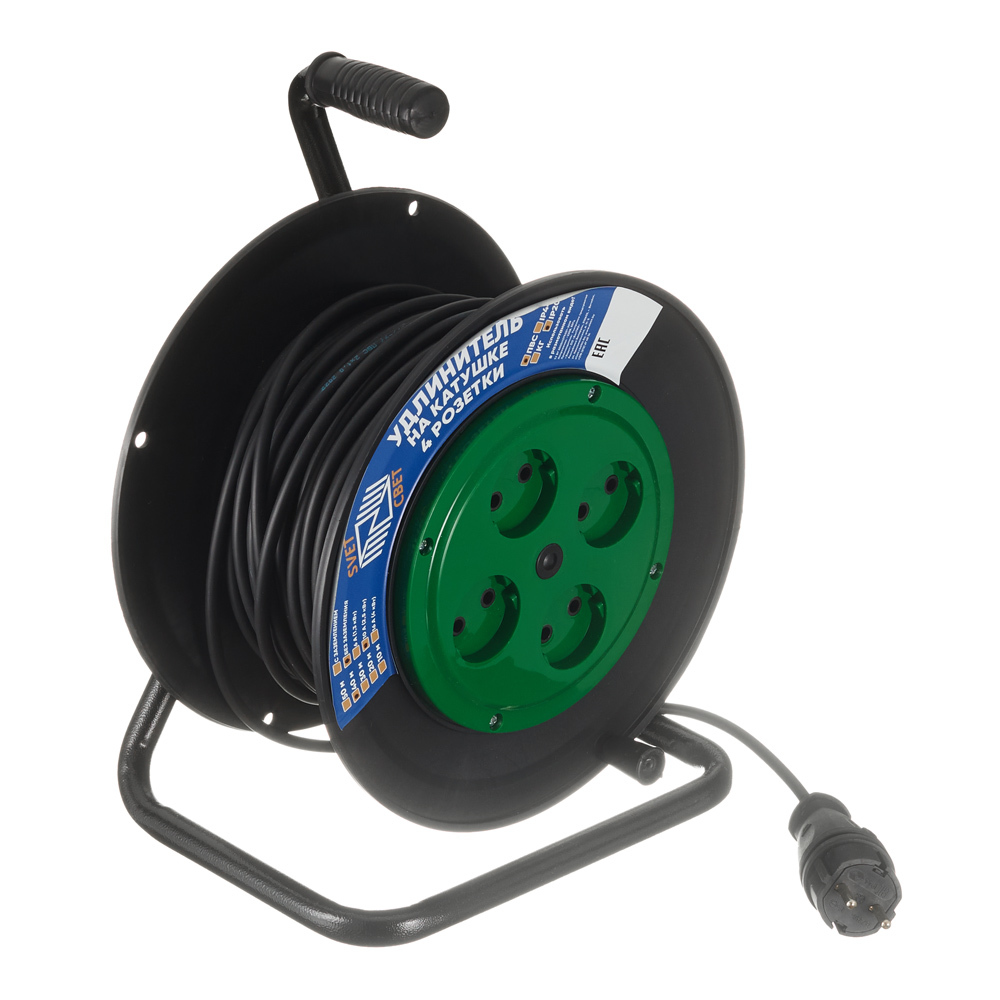 Удлинитель Svet без заземления 40 м на катушке 2,2 кВт 4 розетки ПВС 2х1 кв.мм IP20