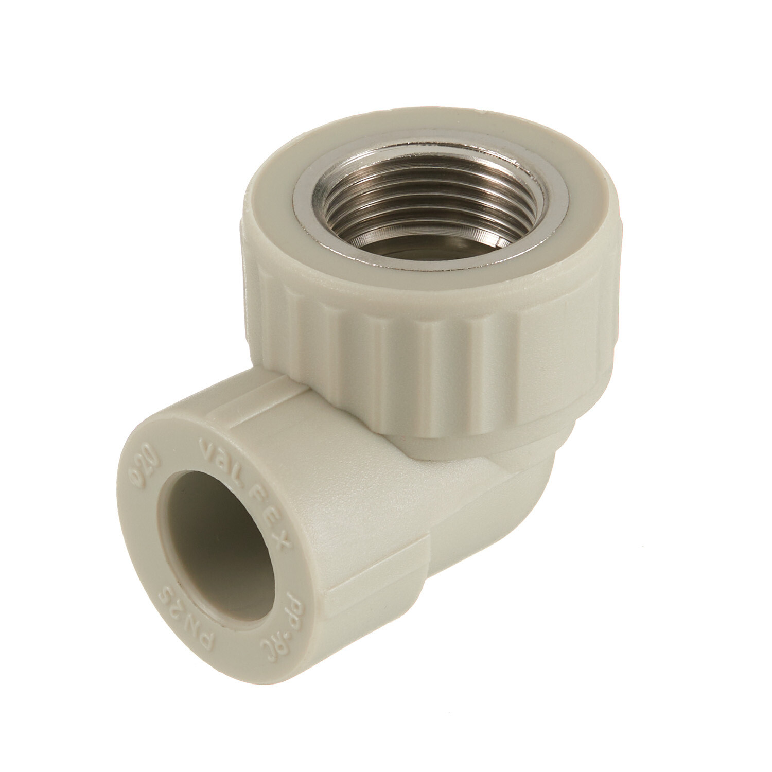 Угол полипропиленовый Valfex комбинированный 20 мм х 3/4 ВР(г) серый (10125120Г)
