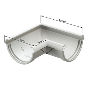 Устанавливается на внешних и внутренних углах кровли и предназначен для соединения желобов под углом 90° в целях изменения направления движения воды.
