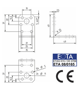 Уголок крепежный оцинкованный 50х50х35х2.5 мм GAH ALBERTS