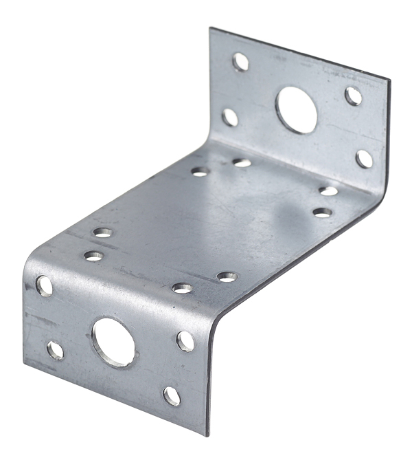 Изготовлен из оцинкованной стали. Имеет отверстия диаметром 5 мм под саморезы или гвозди и 13 мм под болты или штанги с резьбой.