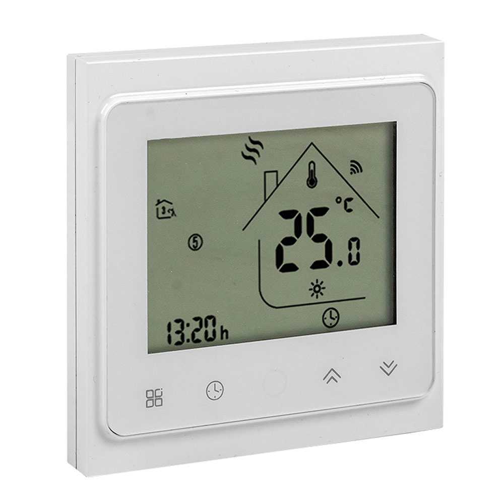 Предназначен для регулирования температуры как на самом устройстве, так и из приложения EKF Connect или через голосового помощника от Яндекса — Алису. Можно включать тёплый пол по расписанию. У термостата два датчика температуры: встроенный датчик температуры воздуха и выносной датчик температуры пола. Также есть функция антизамерзания, которая включит тёплый пол, если температура опустится ниже 5 градусов, и функция определения открытого окна, которая отключит тёплый пол на время проветривания, чтобы не тратить энергию зря. Умный термостат делает дом более комфортным и экономит электроэнергию.