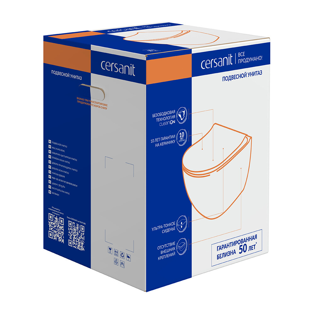 Унитаз подвесной Cersanit Brasko Smart безободковый с сиденьем дюропласт микролифт (64824)