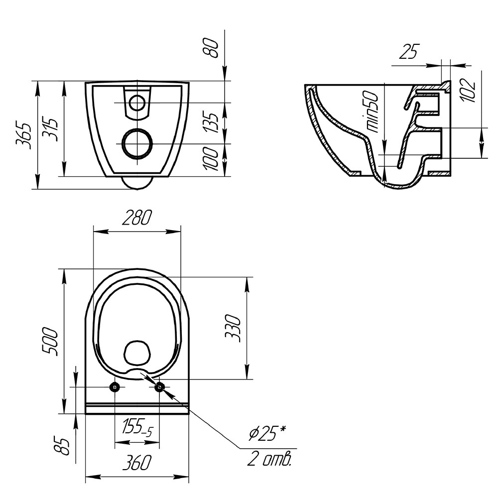 Комплектация: Унитаз керамический безободковый, сиденье для унитаза из дюропласта ультратонкое легкосъемное с функцией плавного закрывания, монтажный комплект, инструкция/гарантийный талон.